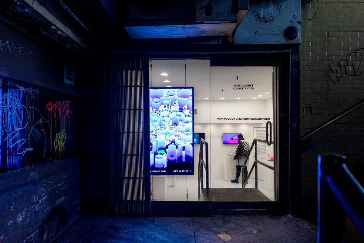 A variation of this project was installed at Public Works Administration gallery in the 50th St subway station in Times Square. (See install photos). In this variation, the avatar is placed within a 3D model of the gallery space - a further replication of the real into virtual space.
